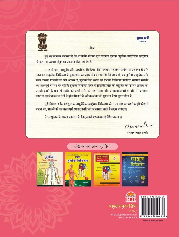 प्रस्तुत पुस्तक मनुष्य को बिना दवा के स्वस्थ करने की एक पहल है। पुरातन समय में न तो अधिक डॉक्टर और वैद्य उपलब्ध थे और न ही प्रचुर मात्रा में दवाएं उपलब्ध थीं किन्तु हर घर में एक सुलभ चिकित्सा पद्धति स्थापित थी जिसे अपनाकर व्यक्ति बीमारी आने पर घर बैठे ही उपचार करके स्वस्थ हो जाते थे। किन्तु पीढ़ी दर पीढ़ी उक्त चिकित्सा पद्धति हमारे घरों से लुप्त हो गई एवं एलोपैथी ने उसका स्थान ले लिया है। वर्तमान समय में साधारण बीमारियों की चिकित्सा भी बहुत महँगी हो गई है। ऐसे में प्रस्तुत पुस्तक घर-घर में सुजोक चिकित्सा अपनाने व बिना दवा के रोगों की चिकित्सा करने में बहुत ही उपयोगी सिद्ध होगी।